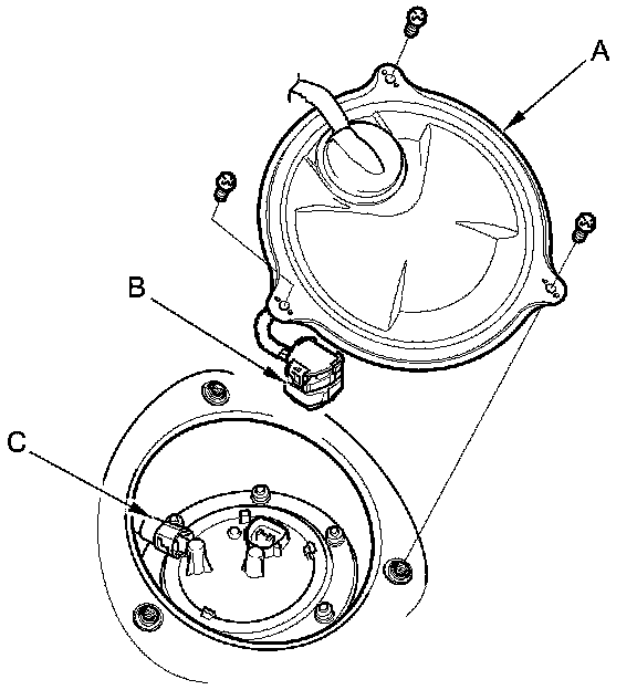 5. Disconnect the quick-connect fitting (C) from the fuel tank unit.
