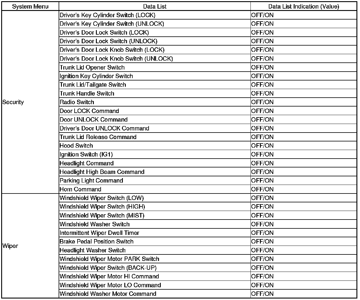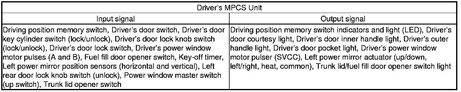 Since there is a break in the communication circuit, the door lock switch message could not be received by the MICU, the relay control module, the gauge control module, or the keyless access control unit. Each of these units will set "loss of communication" error codes for the message(s) they did not receive. There may be multiple communication DTCs if the unit that has become disconnected from the network would normally transmit multiple messages during the communication line test. For example, the driver's MPCS unit sends the door switch message and door lock switch message during the communication circuit test.
