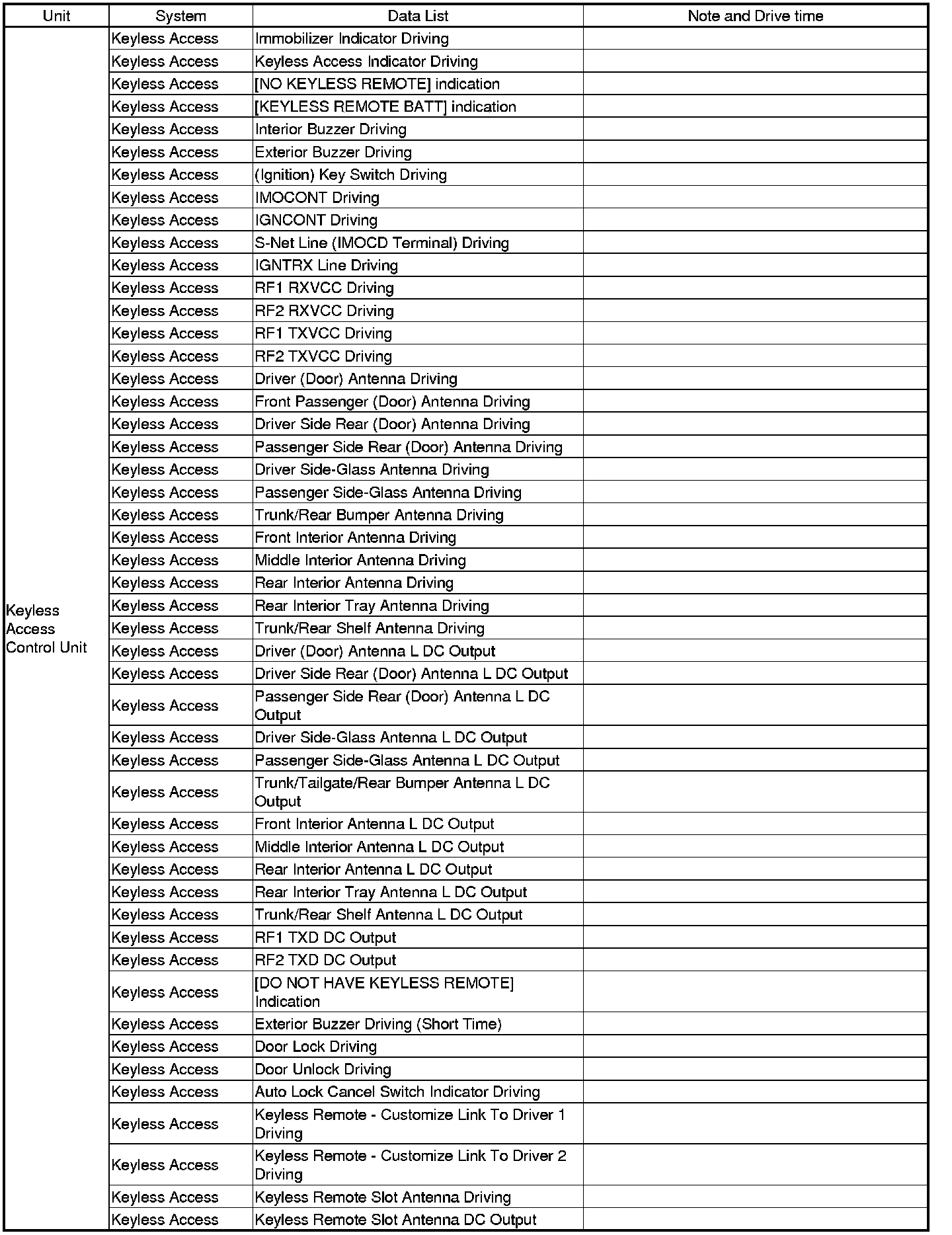 - The MICU, relay control module, gauge control module, and keyless access control unit receive the door lock switch message.