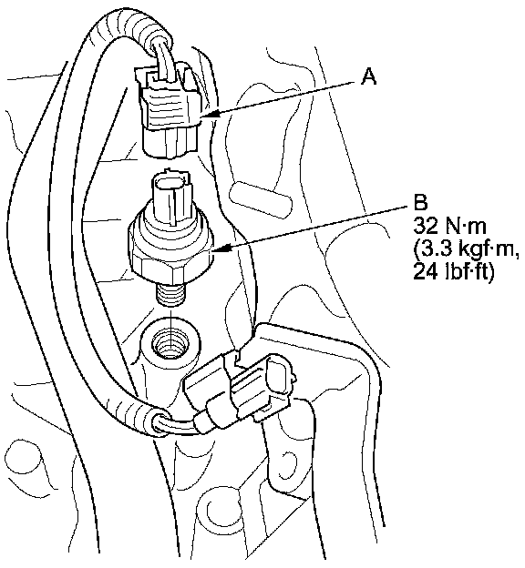 4. Remove the knock sensor (B).