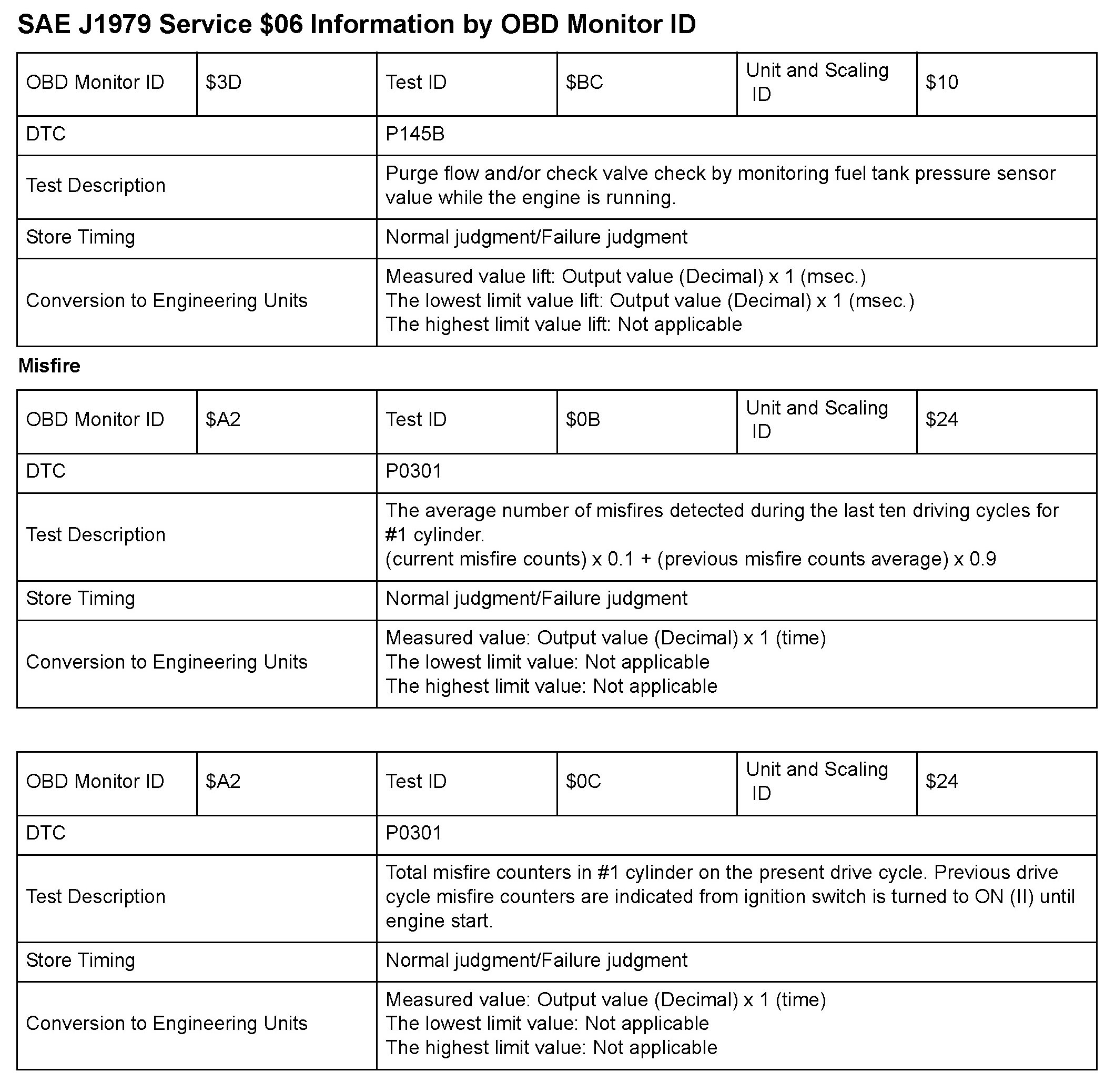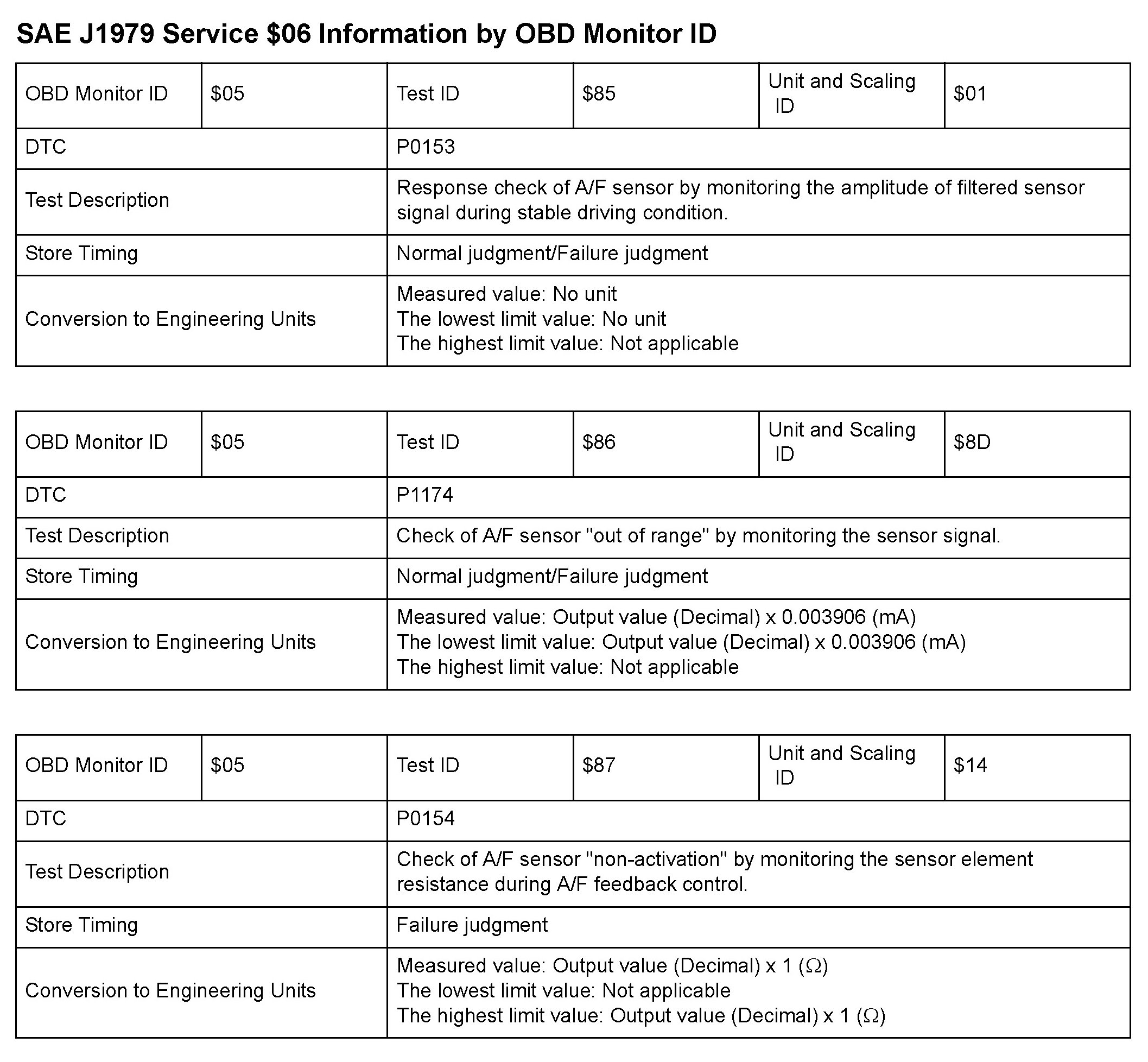 MODE 06 DATA CHARTS