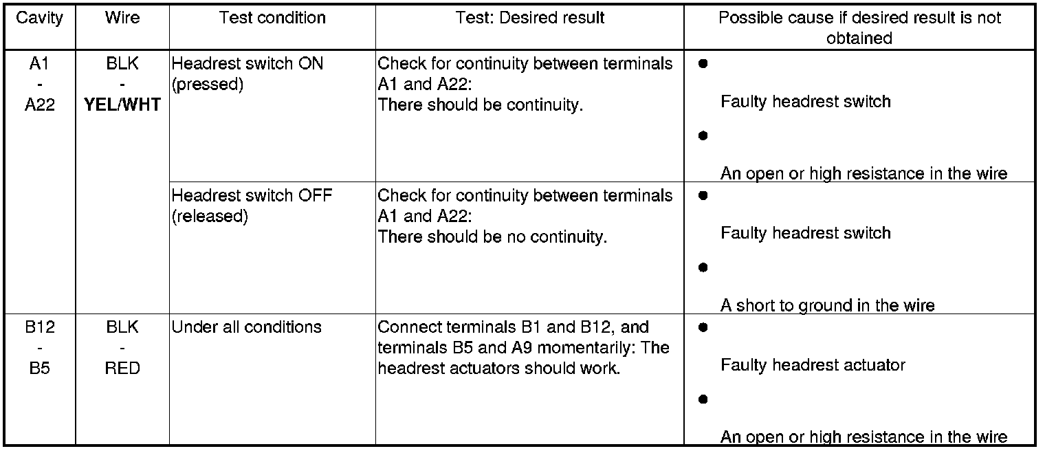 Power Rear Headrests (Power Seat Control Unit) Input Test
