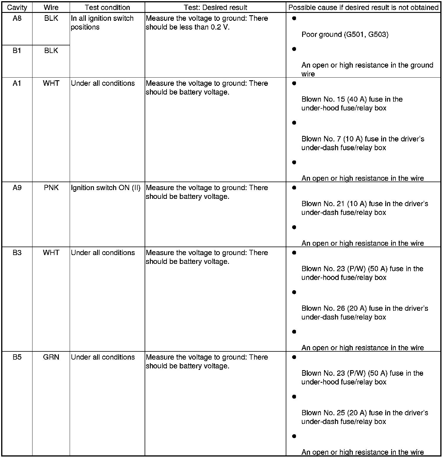 - If all the input tests prove OK, the control unit must be faulty; replace it.
