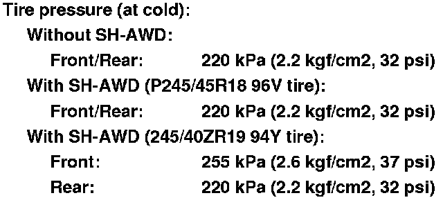 4. Check the tire size and tire pressure.