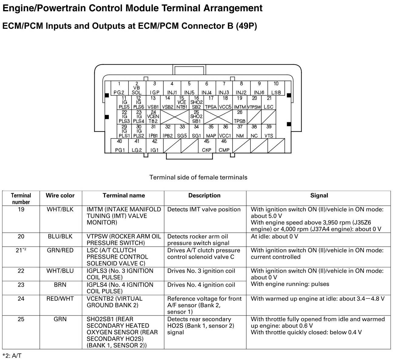 ECM/PCM Inputs and Outputs at Connector B
