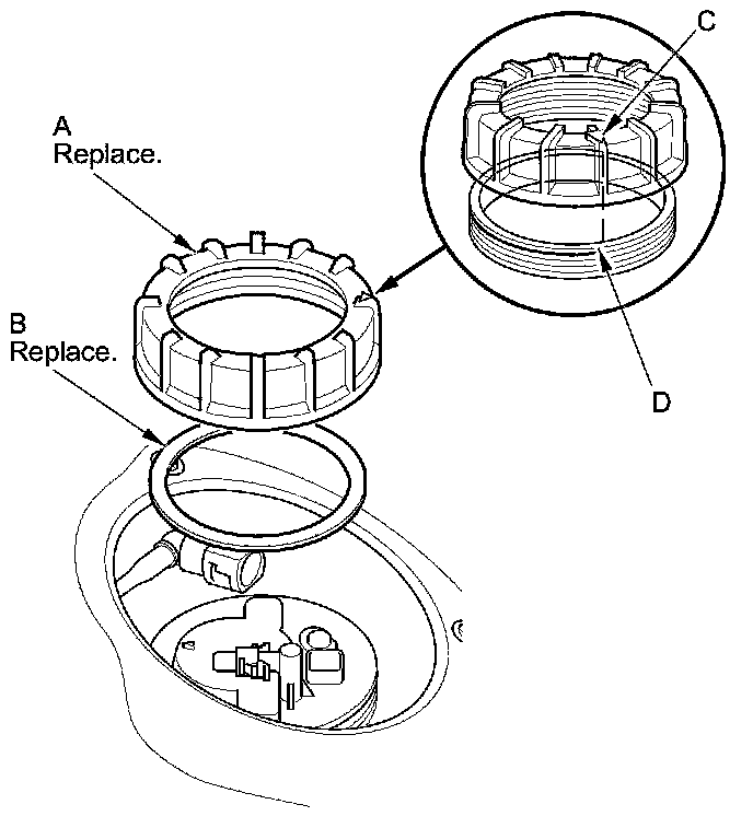 NOTE: To prevent a fuel leak, check the base gasket, visually or by hand, to make sure it is not pinched.