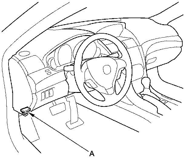 1. Connect HDS to the data link connector (DLC) (A) located under the driver's side of the dashboard.
