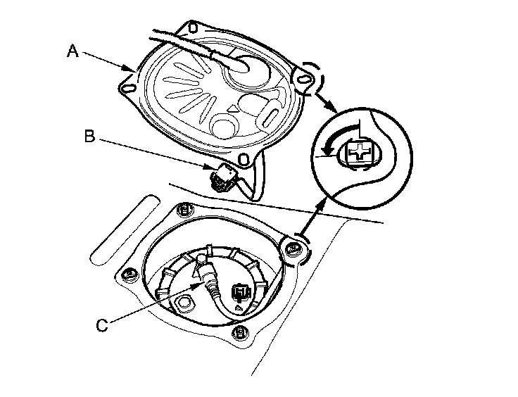 5. Disconnect the quick-connect fitting (C) from the fuel tank unit.