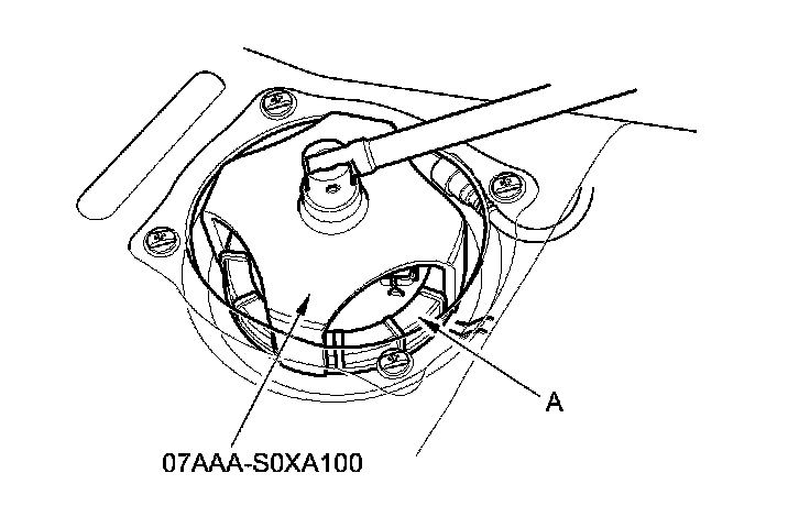 6. Using the special tool, loosen the locknut (A).