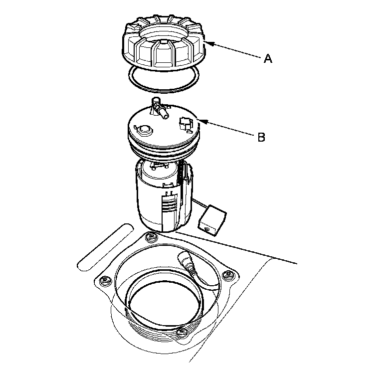 7. Remove the locknut (A) and the fuel tank unit (B).