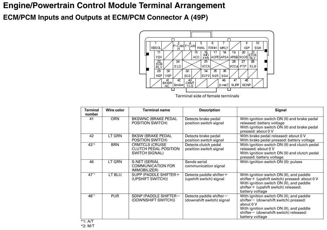 ECM/PCM Inputs and Outputs at ECM/PCM Connector A (49P)