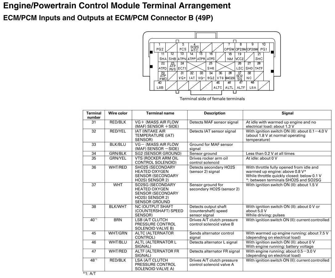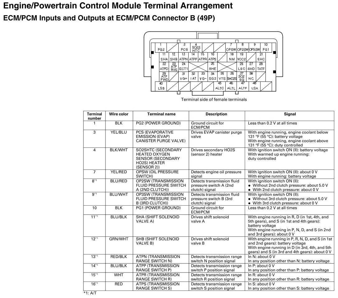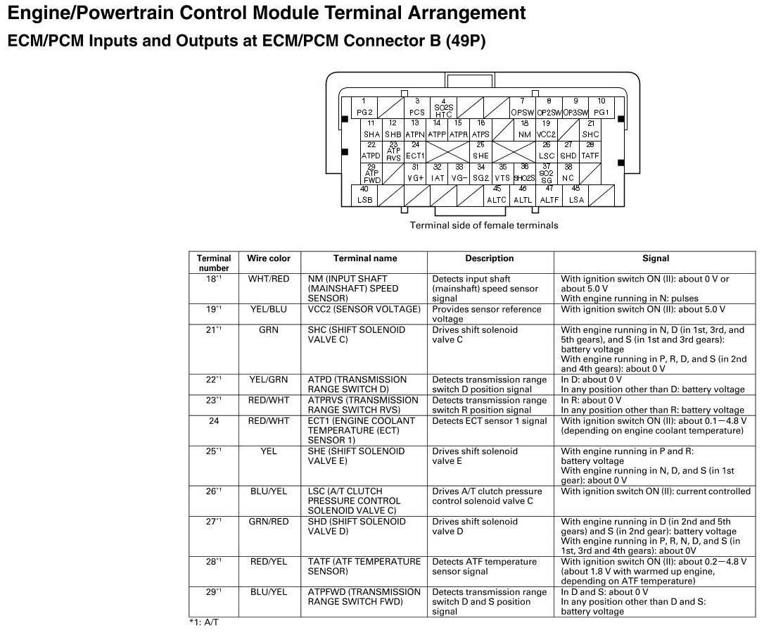 ECM/PCM Inputs and Outputs at at ECM/PCM Connector B (49P)