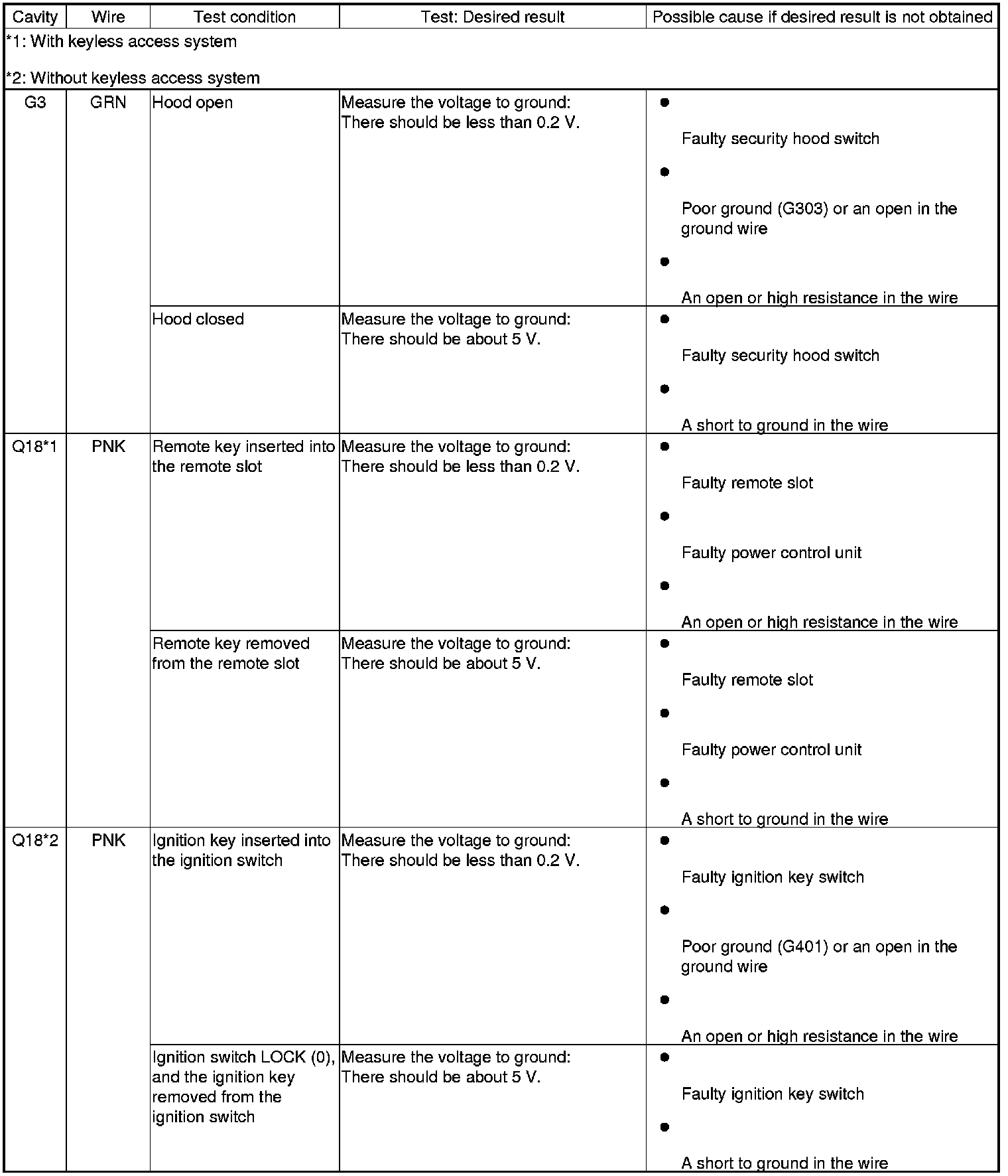 Keyless/Power Door Locks/Security System Input Test
