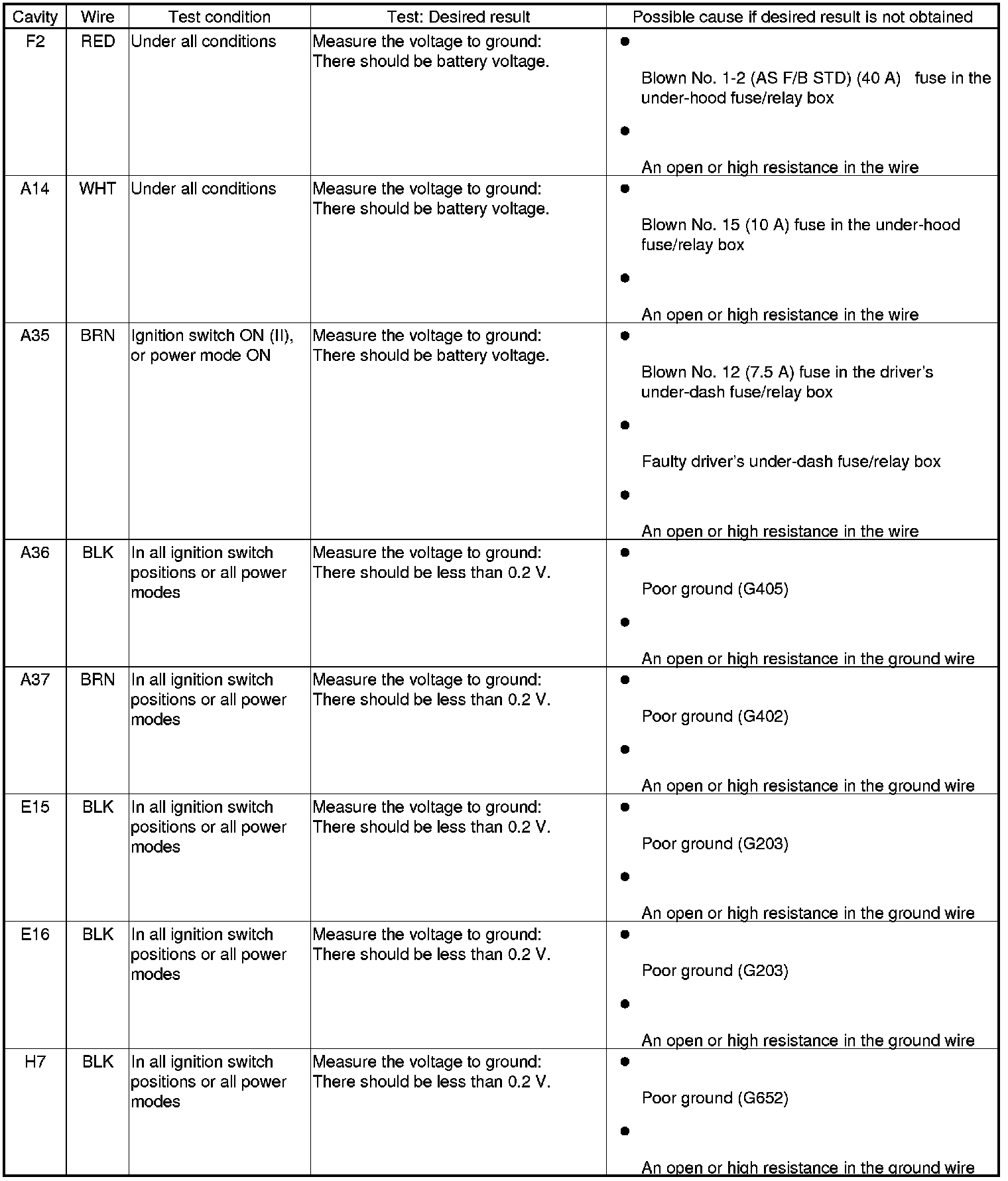 12. Reconnect the connectors to the passenger's under-dash fuse/relay box, and do the following input tests: