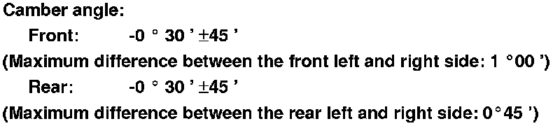 - If the measurement for the front camber is not within the specification, go to front camber adjustment.