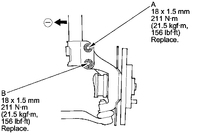3. Hold the adjusting bolt (A) on lower arm B, and remove the self-locking nut (C).