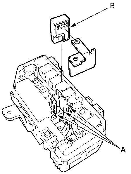 1. Remove the under-hood fuse/relay box Under-Hood Fuse/Relay Box Removal and Installation.