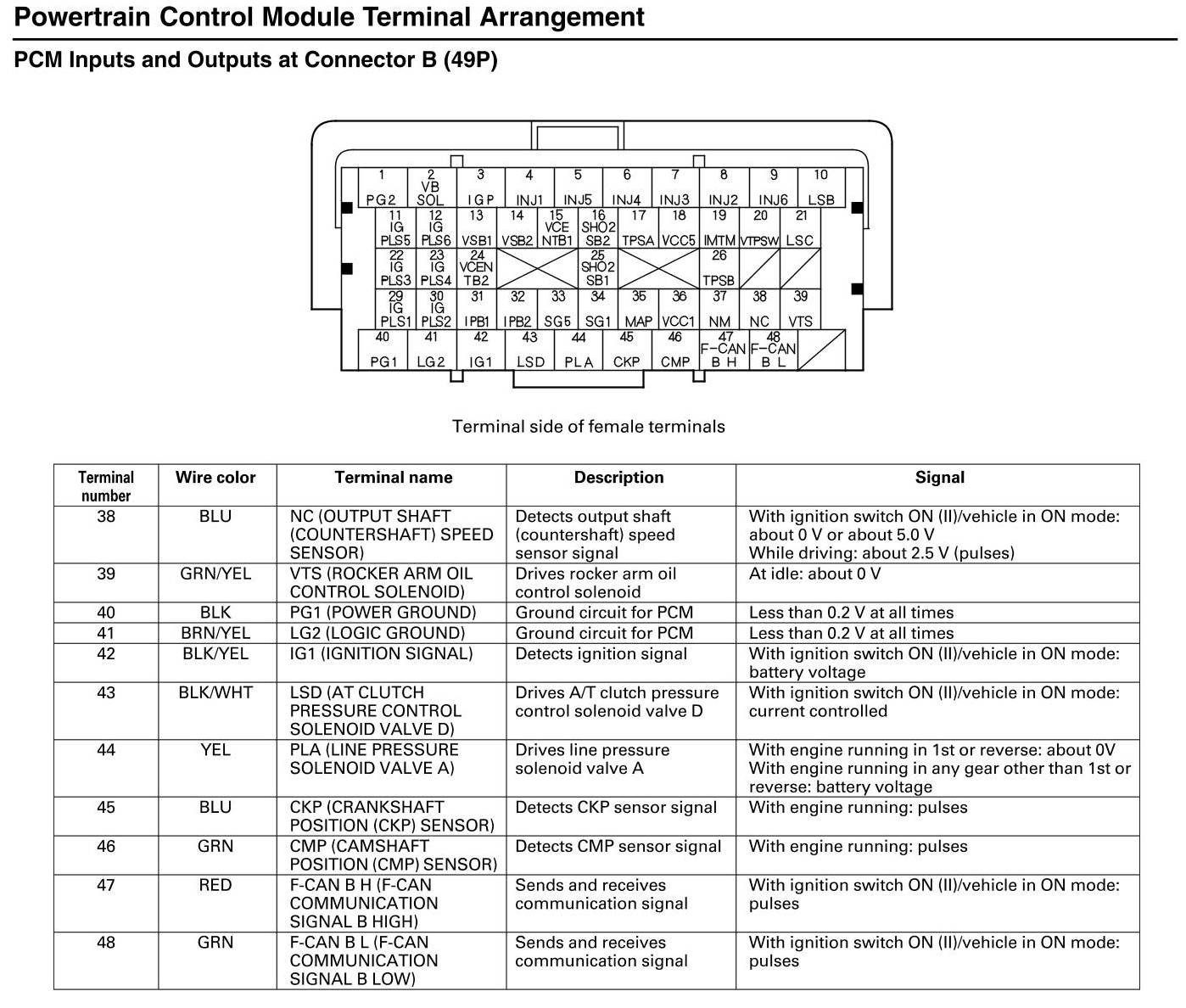 PCM Inputs and Outputs at Connector B