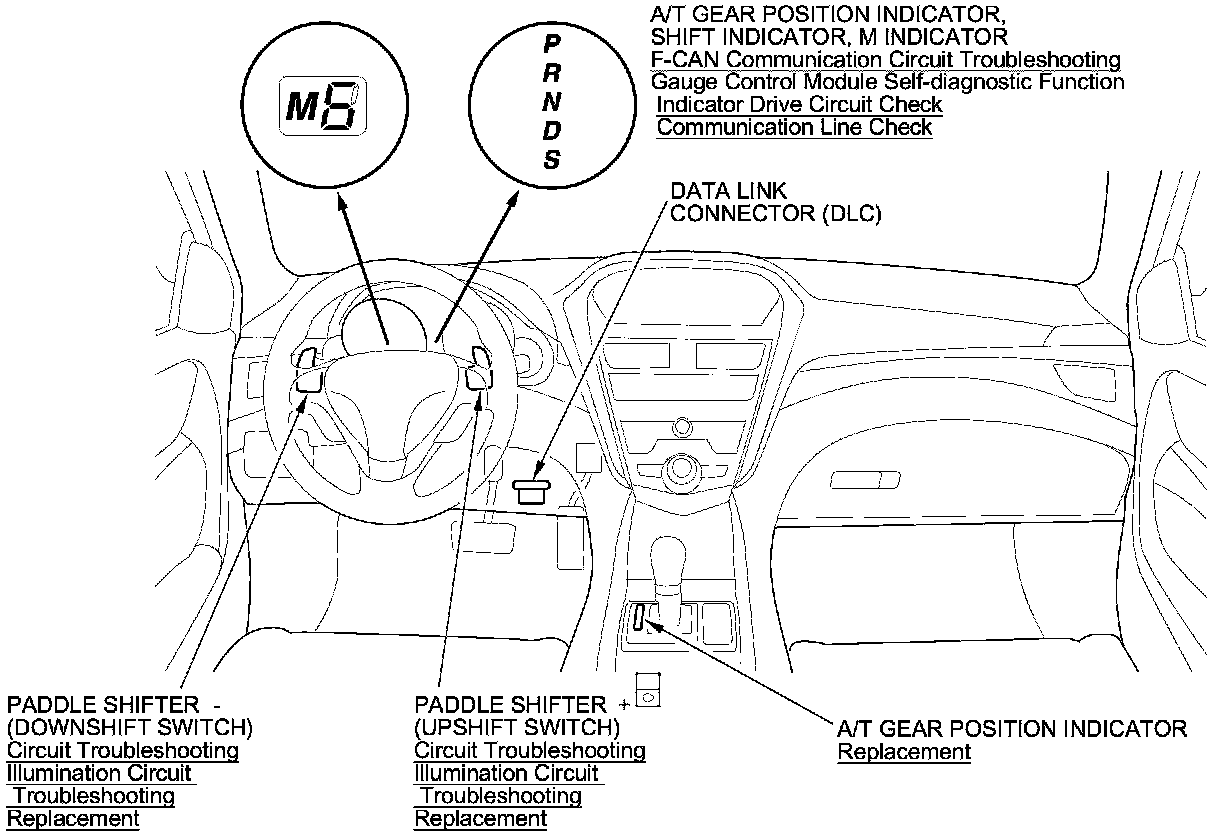 A/T Gear Position Indicator Component Location Index
