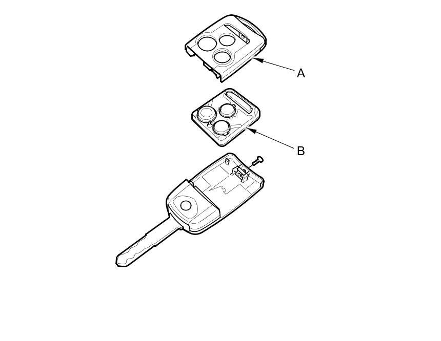 4. Replace the transmitter battery (A) with a new one (CR1616), and try to lock and unlock the doors with the transmitter by pressing the lock or unlock button five or six times.