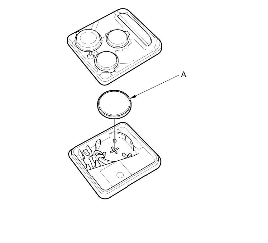 6. Replace the transmitter battery (A) with a new one, and press lock or unlock button and check the receive condition on the screen of the HDS.