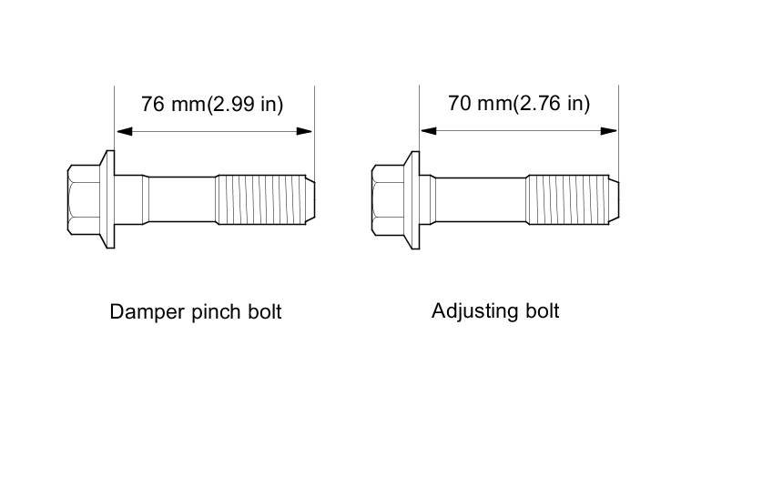 - For negative camber adjustment replace the damper pinch bolt of the lower side with the adjusting bolt. Push in damper to create a negative gain in camber angle.