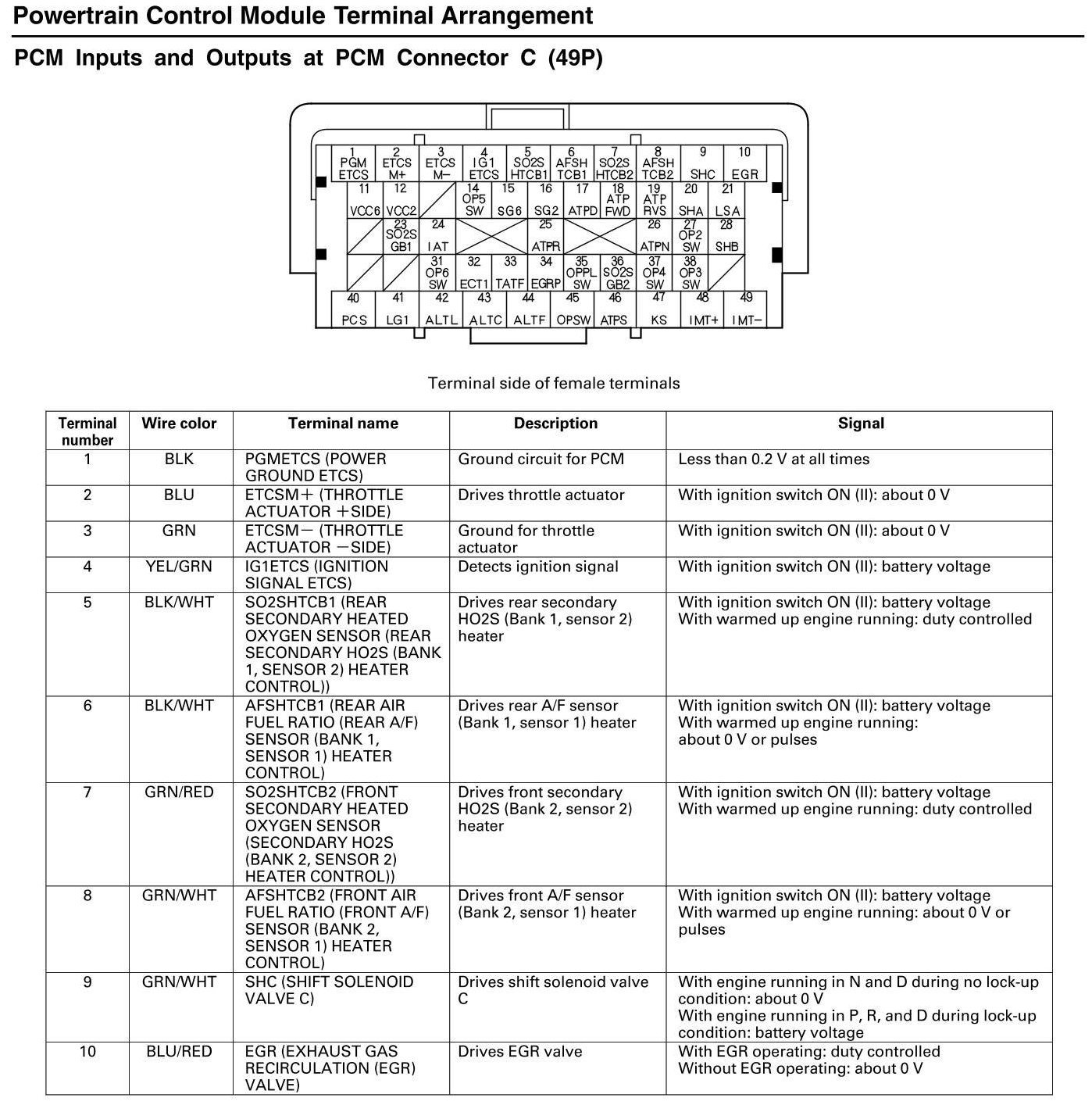 PCM Inputs And Outputs At PCM Connector C (49P)