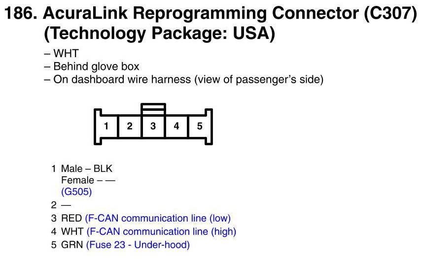 View 186 - AcuraLink Reprogramming Connector (C307) Connector View (Technology Package: USA)