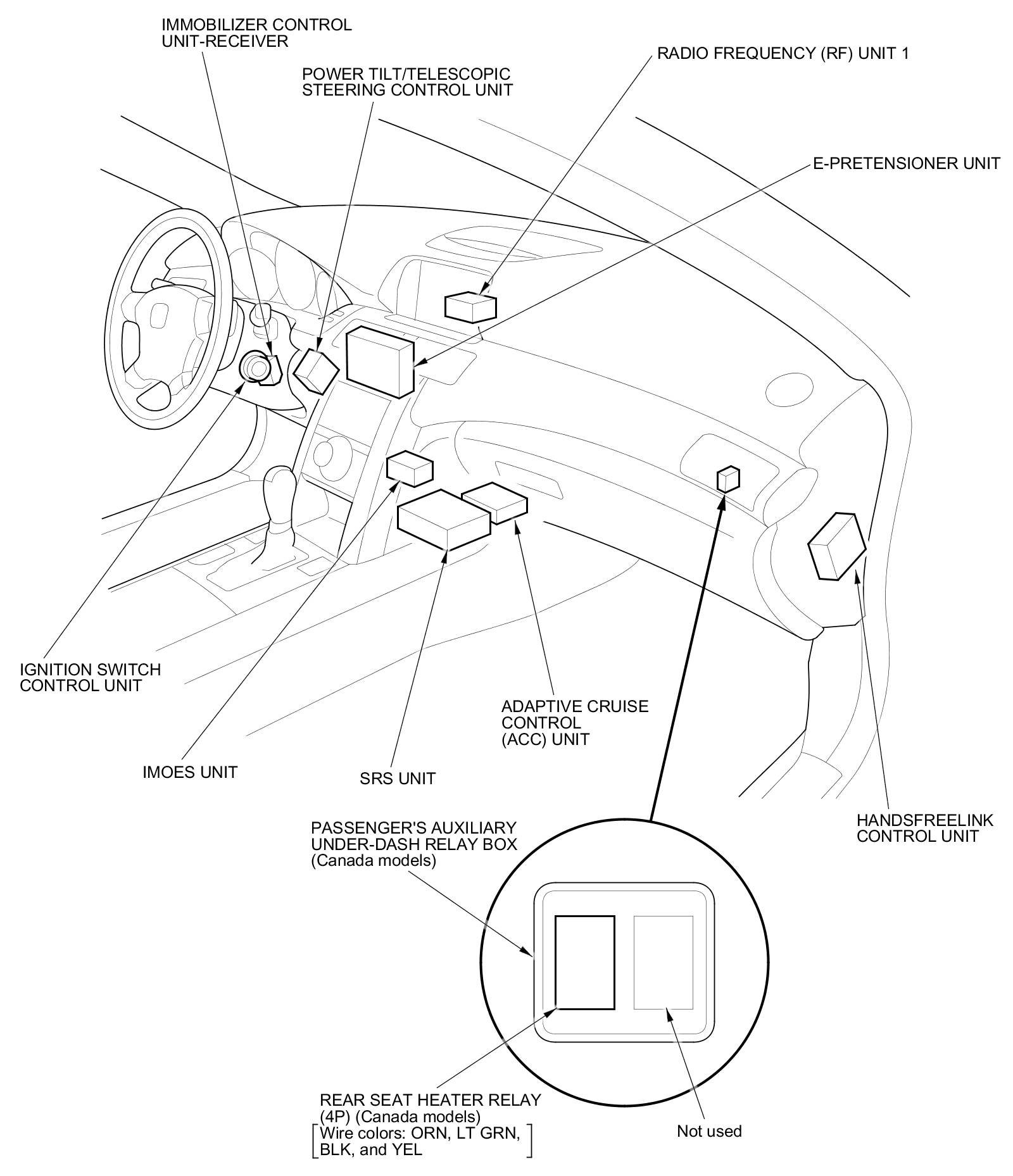 Relay and Control Unit Locations - Dashboard