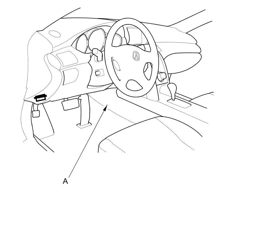 1. With the ignition switch in LOCK (0), and connect the HDS (Honda Diagnostic System) to the data link connector (DLC) (A) located under the driver's side of the dashboard.