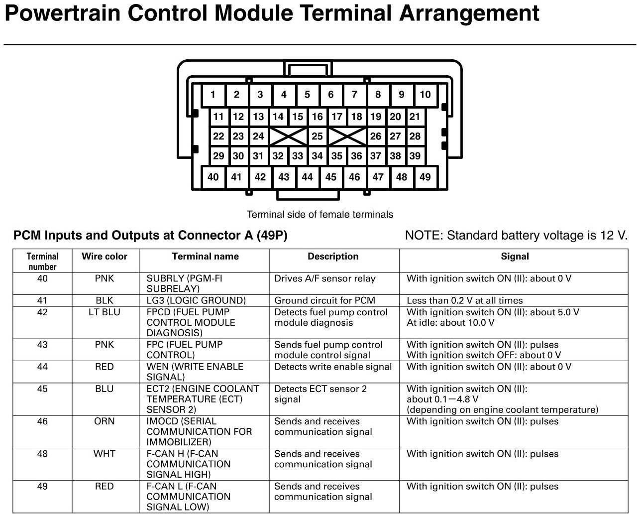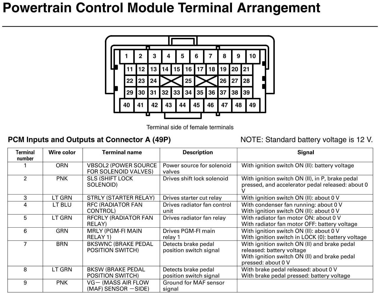 PCM Inputs And Outputs At Connector A