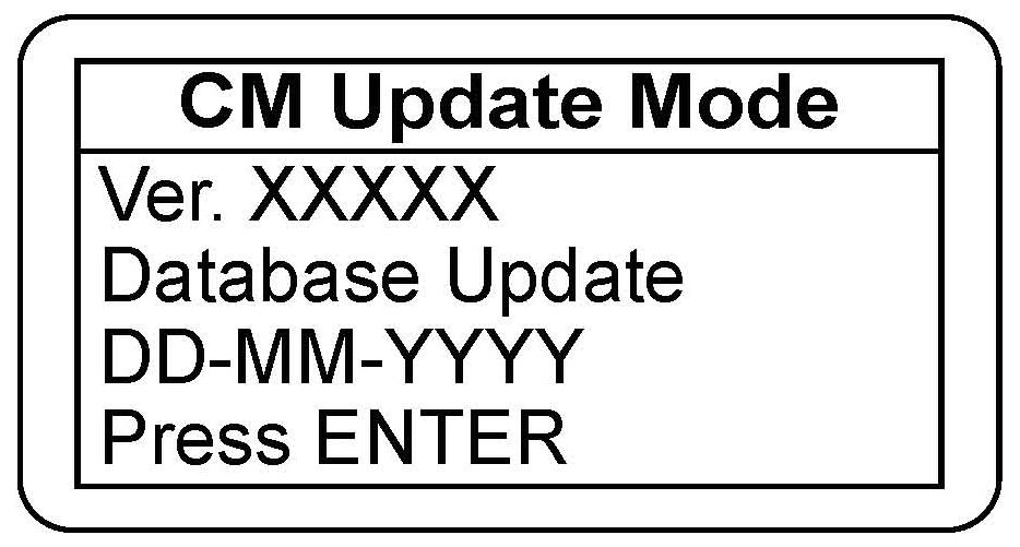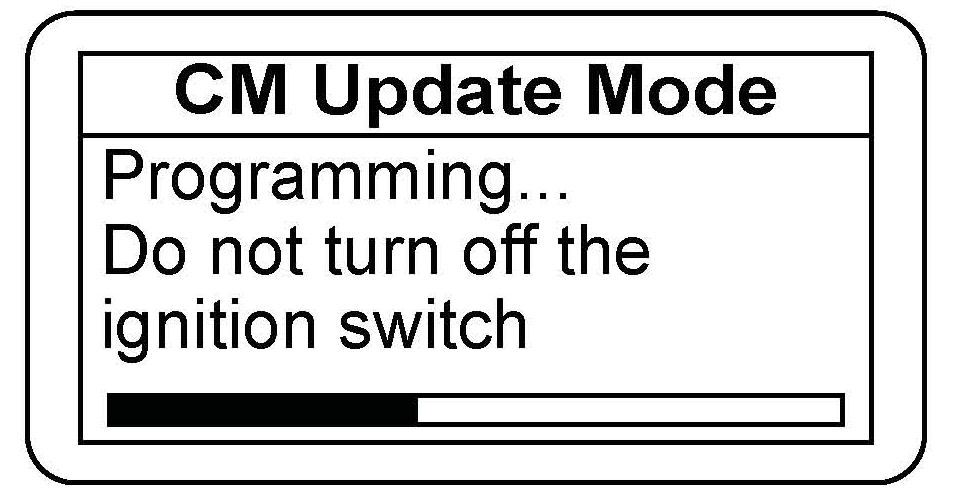 16. If an error occurs during the updating procedure, an error message appears. Keep the ignition switch in ON (II). Press ENTER to display the error code. Refer to the CM Update Error Code Table and Error Messages in the MVCI User Guide for more information about the code and its solutions.