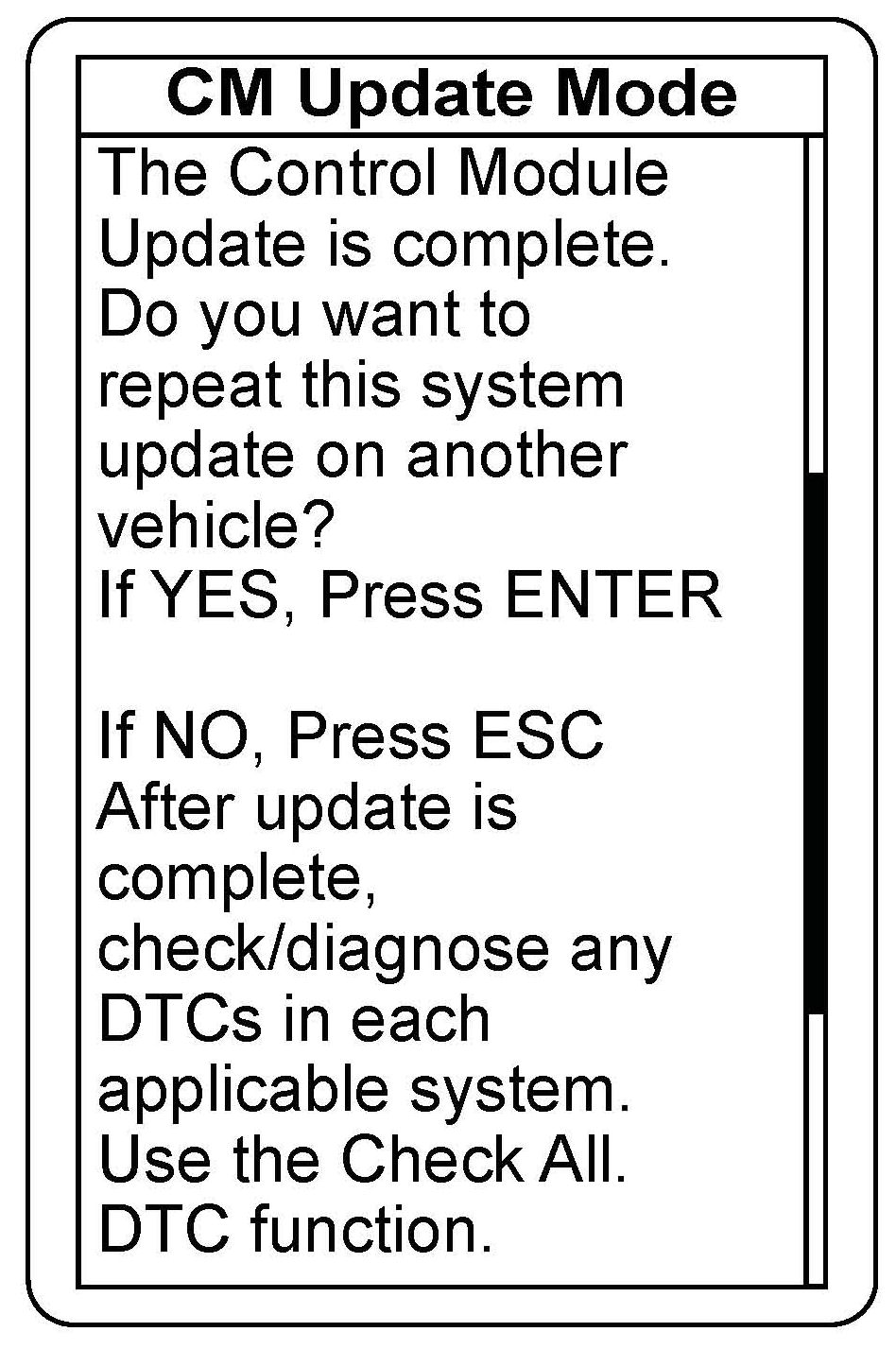 11. After the MVCI has copied the files, a confirmation screen appears. Press ENTER to update the control unit/module, or press ESC to exit.
