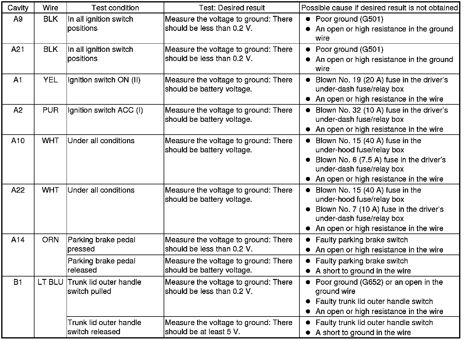 - If all the input tests prove OK, the control unit must be faulty; replace it, then go to step 7.