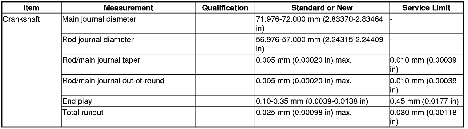 Crankshaft Specification(s)