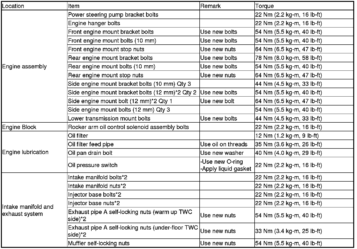 Home >> Acura >> 2012 >> RL V6-3.7L >> Repair and Diagnosis >> Specifications >> Mechanical Specifications >> Engine >> System Specifications >> Torque Specifications
