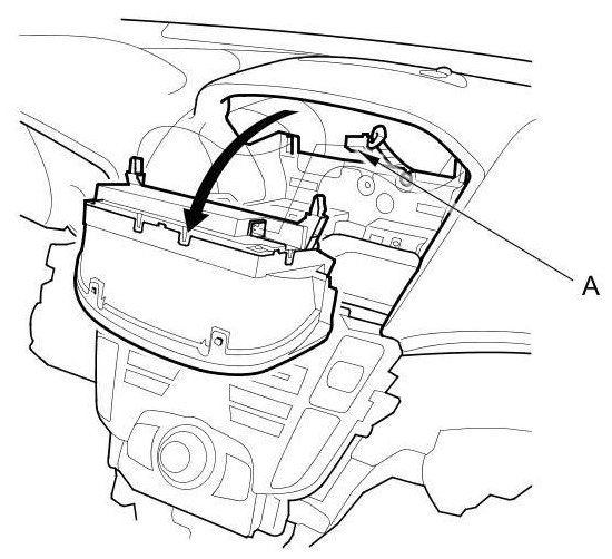 3. Pull out the audio-HVAC display unit. Then disconnect the connector (A) from the audio-HVAC display unit.