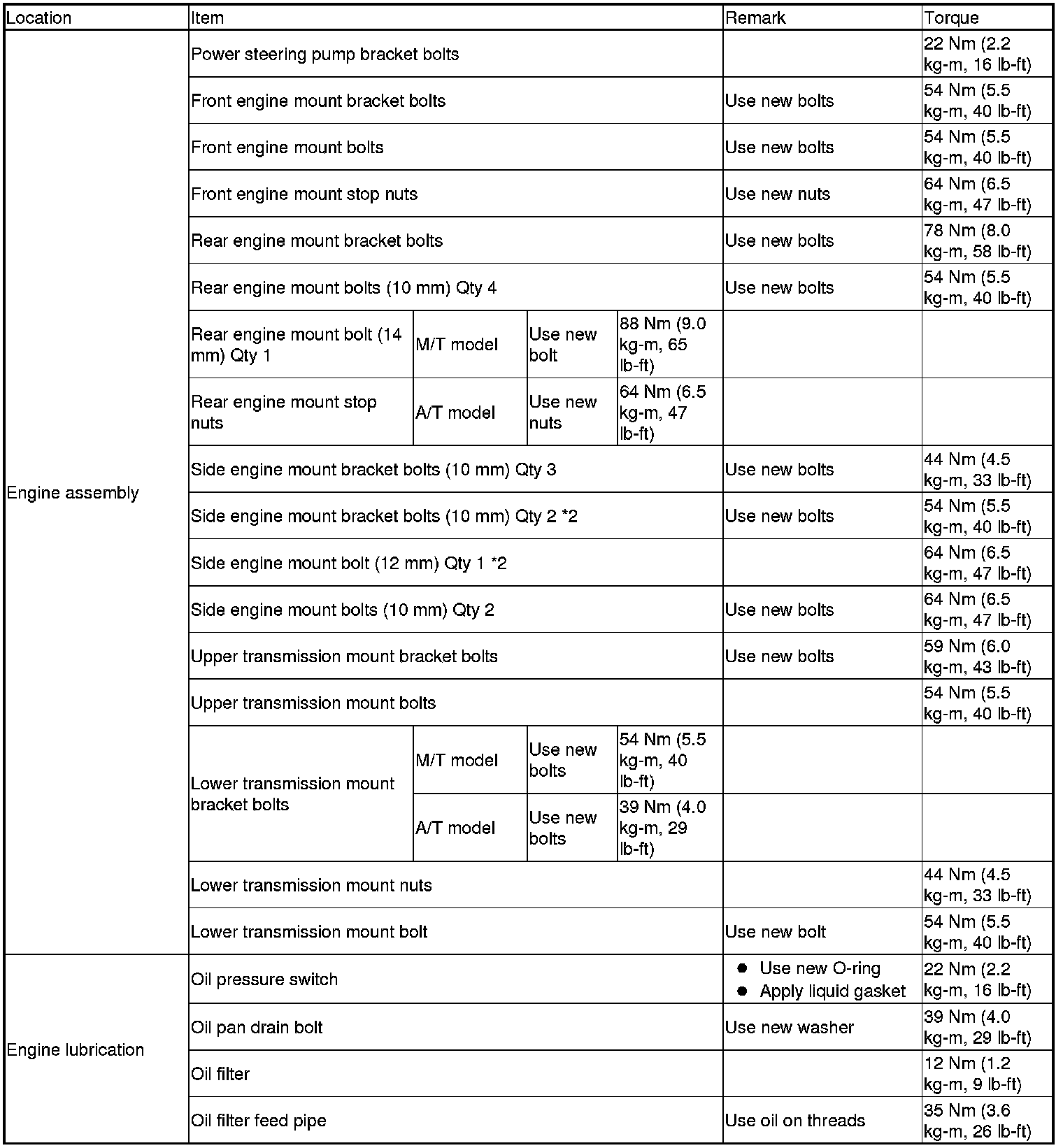 *2: Follow the S/M procedures closely for torque, sequence, and special steps.