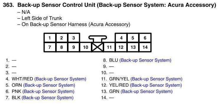 View 363 - Back-up Sensor Control Unit Connector View (Back-up Sensor System: Acura Accessory)