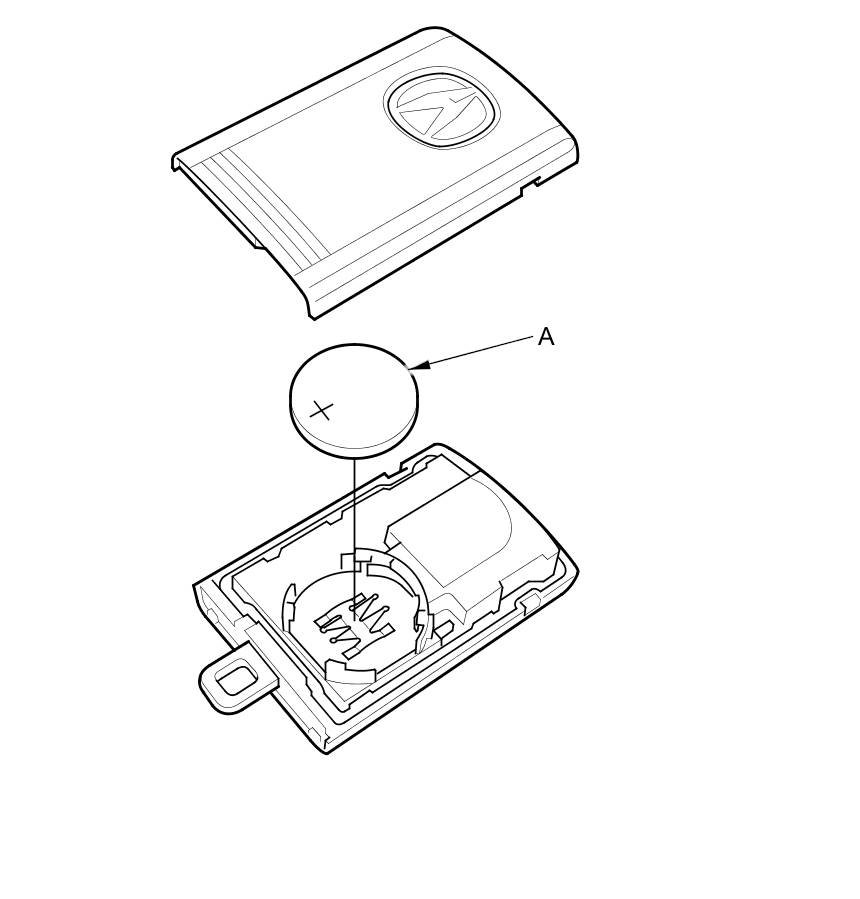 2. Replace the remote battery (A) with a new one (CR2032), and try to lock and unlock the doors with the remote by pressing the lock or unlock button at least 10 times.