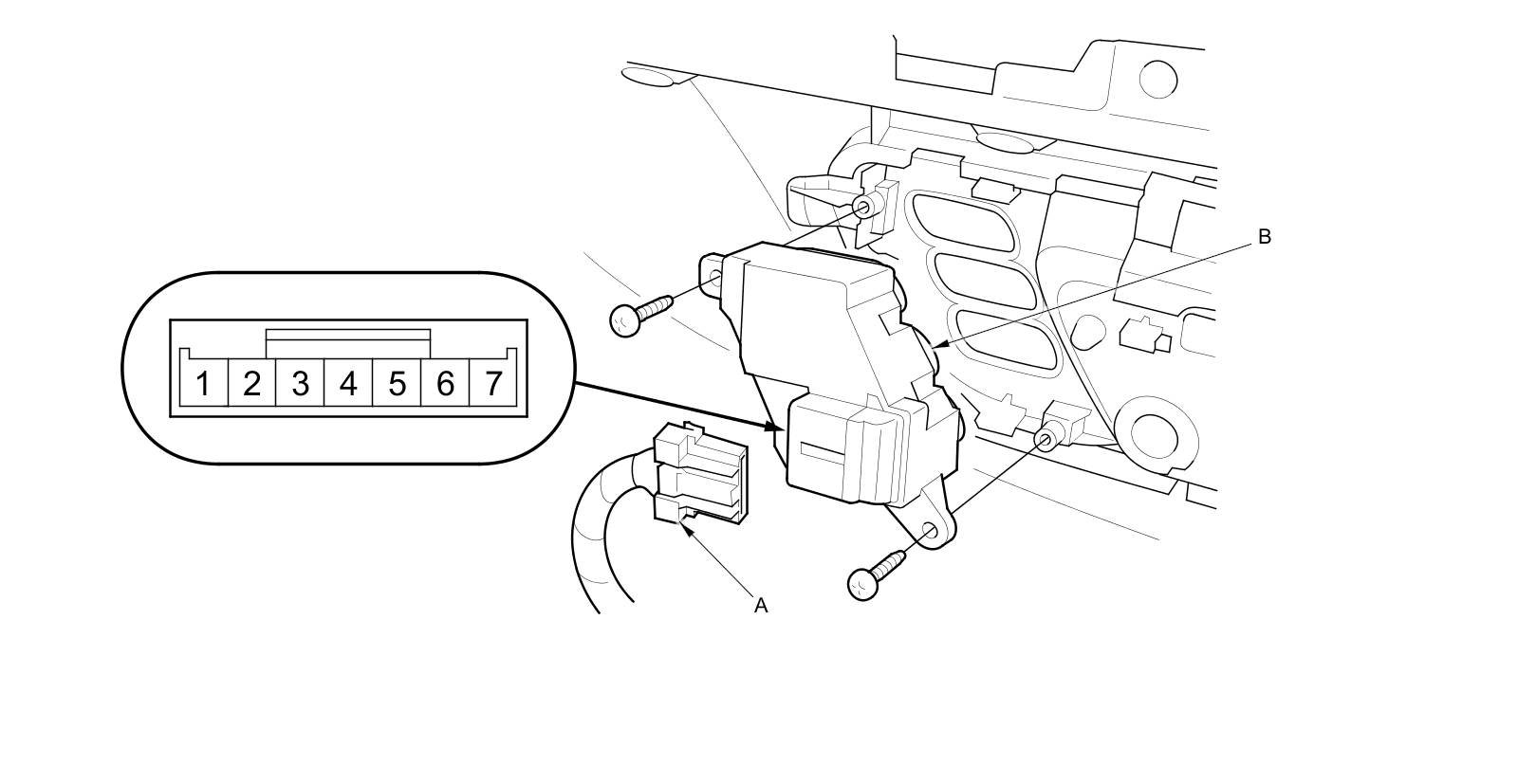 2. Disconnect the 7P connector (A) from the driver's position memory switch (B).