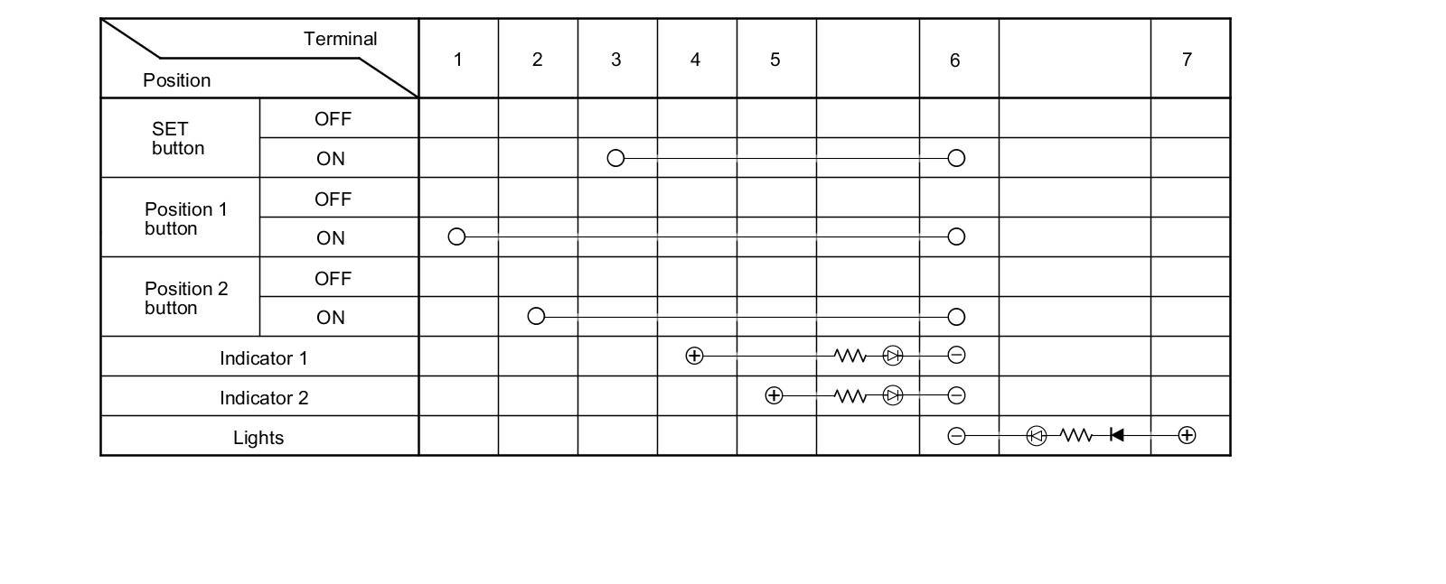 4. Check for continuity between the terminals in each switch position according to the table.