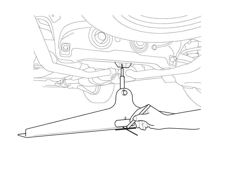 6. Rear area of the vehicle: Place the centering stand under the rear jack point, then mark the floor at the centerline of the tool.