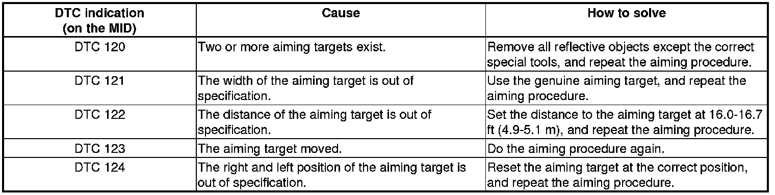 Incomplete aiming will also cause the MID to indicate certain temporary DTCs, refer to the DTCs (if the aiming is incomplete).