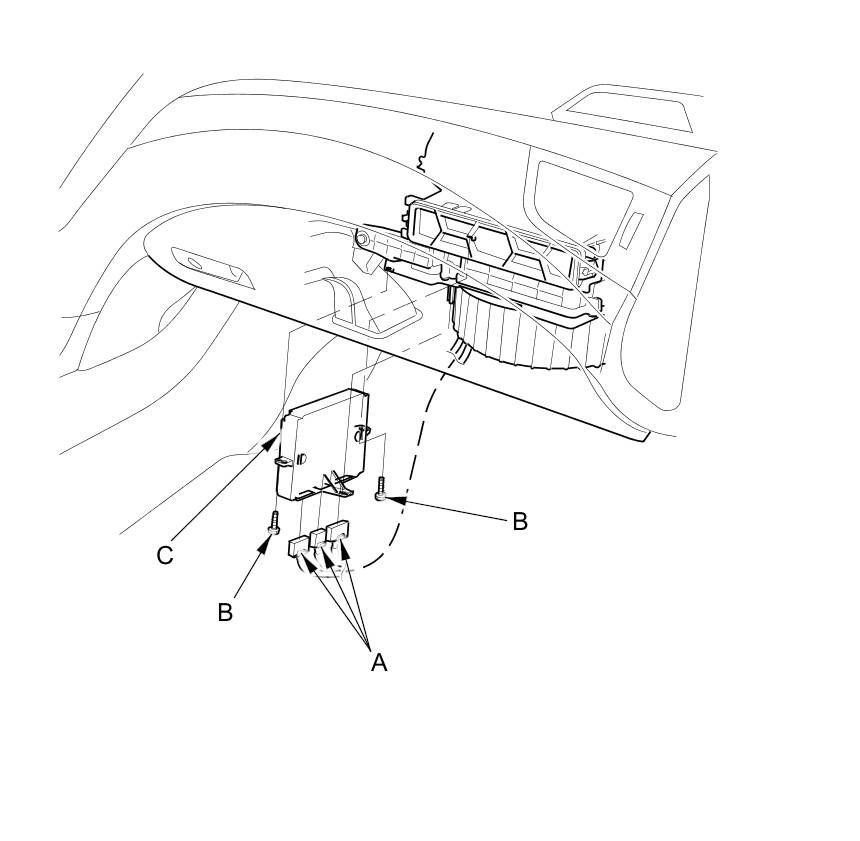 1. Remove the passenger's dashboard undercover Passenger's Dashboard Undercover Removal / Installation.