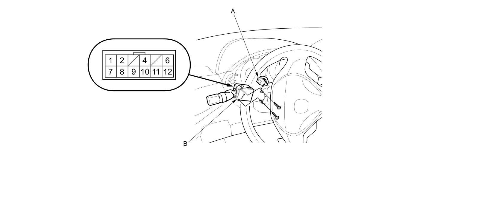 2. Disconnect the 12P connector (A) from the combination light switch (B).