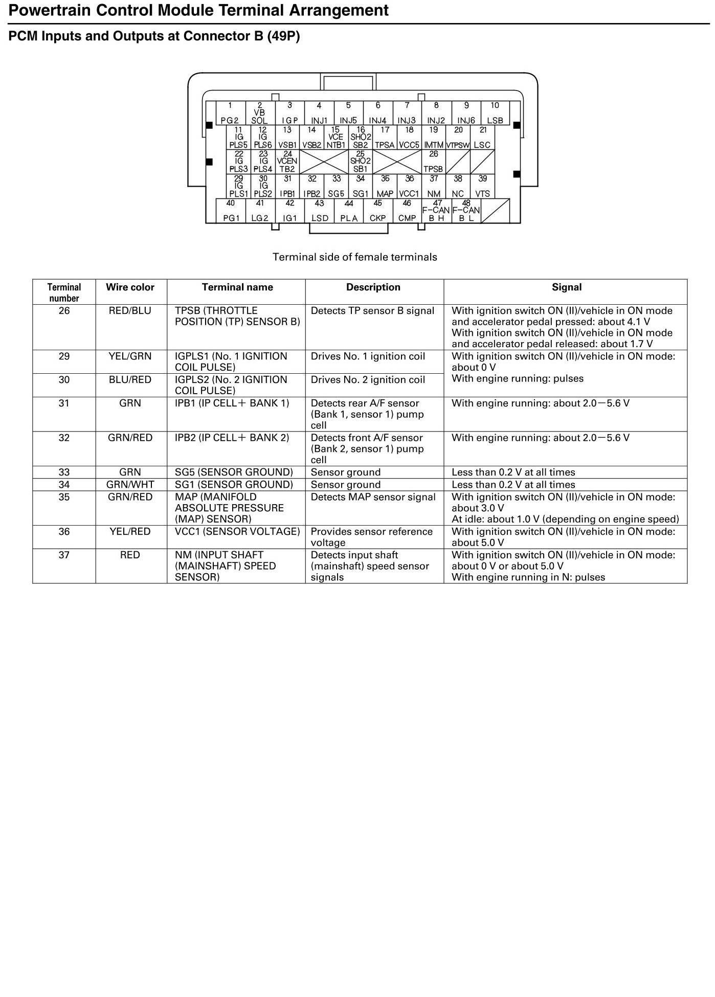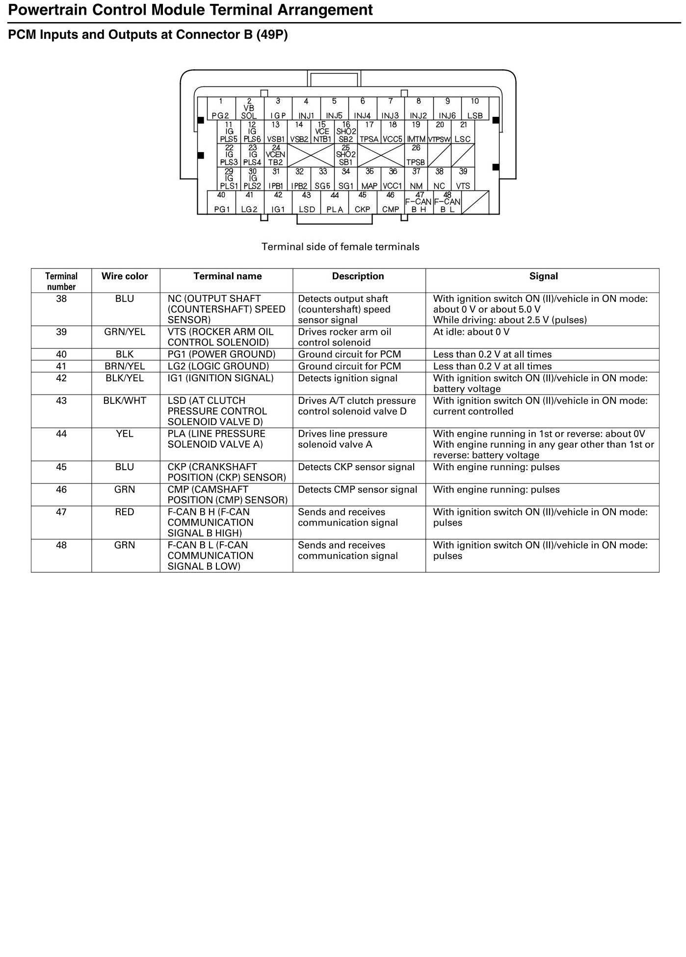 PCM Inputs and Outputs at Connector B