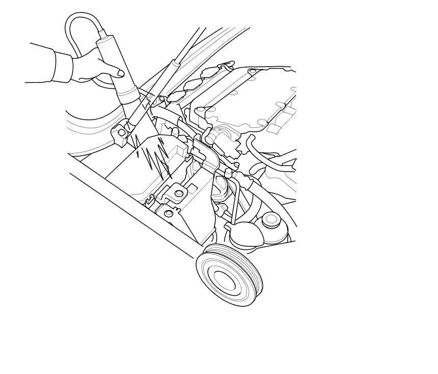 5. Start the engine. Hold the engine speed at 3,000 rpm with no load (in P or N) until the radiator fan comes on, then let it idle.