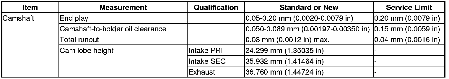 Camshaft Specification(s)