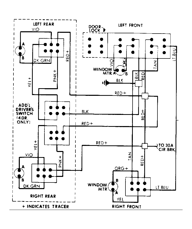 - Connect a jumper wire between Red wire and Yellow or Violet wire at switch connector. Connect a second jumper between Black wire and Orange or Dark Green wire. Motor should move window up or down.